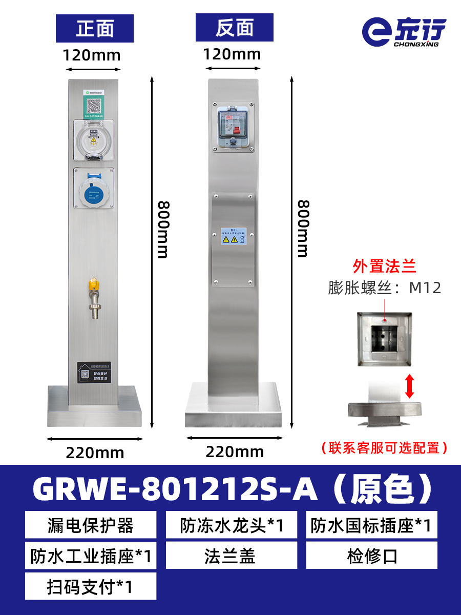 智能水電樁GRWE-801212S-A水電樁,304不銹鋼耐腐蝕性能突出,防水防銹,品質更有保障。智能掃碼控制,定時開關智能斷電。防凍水龍頭,智能防凍設計,告別水管凍裂煩惱。
